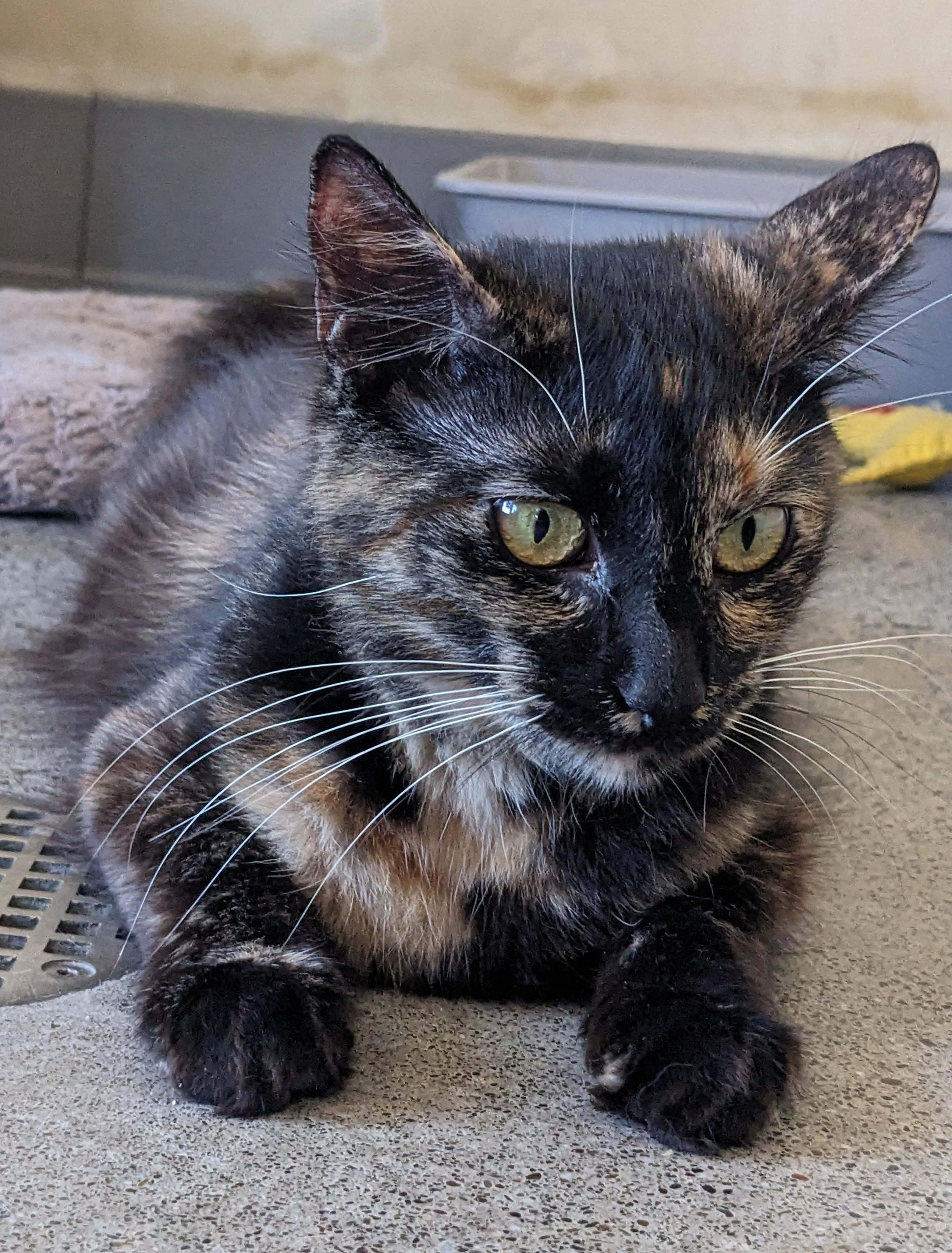 Bio: Bubbles is a shy but gentle tortoiseshell cat with stunning orange and black markings. She was a little scared of the noisy shelter environment, so she often hid in her box. But now she rushes up to the door of her kennel to greet you with meows and purrs. She's a truly special cat who would love a quiet home with loving adults. If that sounds like you, come by and meet her today!