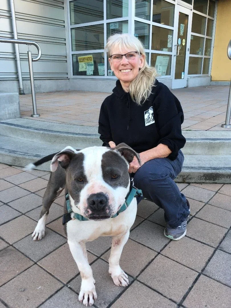 I began volunteering at BACS in 1998 when the shelter was located on 2nd St., and then run by the Police Dept. On my orientation day, after a brief talk in shelter kitchen, we were instructed to grab a leash, a choke chain and choose a dog to take out for a 10-min. walk, and thus was launched into the world of dog walking! Soon after that, shelter management was transferred to the City of Berkeley when things began to change for the better for the shelter. I also joined Home at Last Rescue (HAL) during those early years of high euthanasia rates at BACS to help rescue as many animals as possible, for adoption or fostering. I continue to volunteer daily at BACS as a dog walker and also help as the liason between Friends of BACS and Miranda's Dog Rescue in Northern California.