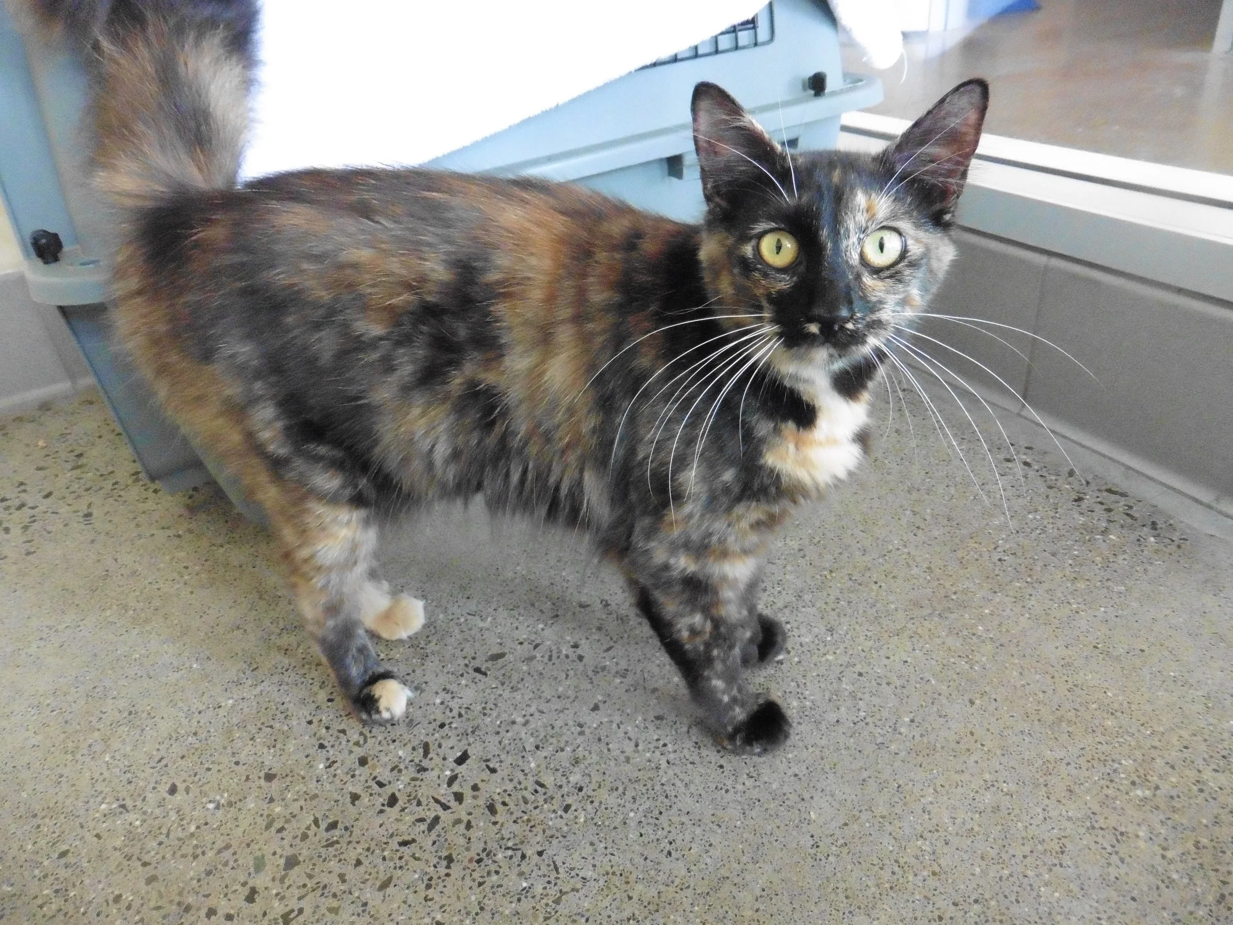 Bio: Bubbles is a shy but gentle tortoiseshell cat with stunning orange and black markings. She was a little scared of the noisy shelter environment, so she often hid in her box. But now she rushes up to the door of her kennel to greet you with meows and purrs. She's a truly special cat who would love a quiet home with loving adults. If that sounds like you, come by and meet her today!